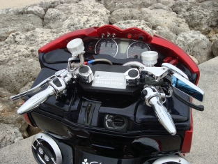 クローバーオリジナルのセパハンキットセンターのカーボンエンブレムはシルバーカーボン仕様、ブラックカーボン仕様が有り本体の色はブラックアルマイト。